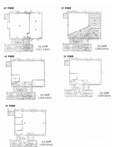 階数 | 面積 | 賃料+共益費(税別) | 敷金 | 入居日 | 図面 | 詳細 |