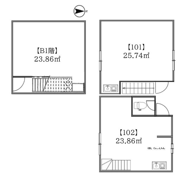 地上2階 地下1階
